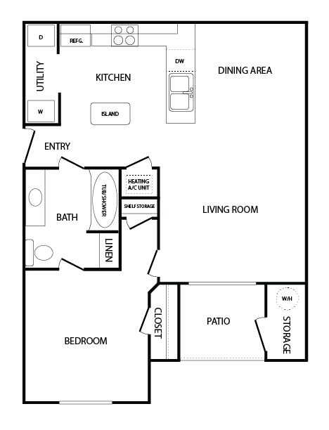 ONE BEDROOM / ONE BATH - 825 SQ FT